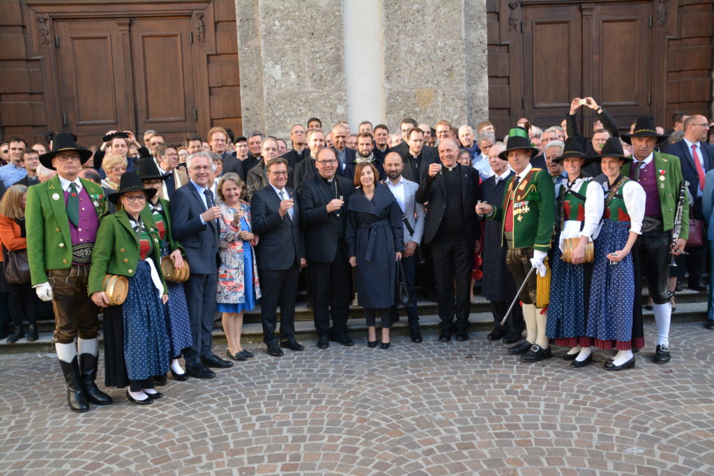 Anlässlich des internationalen Treffens der Priester der Gemeinschaft Emmanuel, das heuer in Innsbruck stattfand, lud Landeshauptmann Günther Platter zum Auftakt, am Mittwochabend des 24. April 2019, zum Landesüblichen Empfang vor der Jesuitenkirche am Karl-Rahner-Platz.