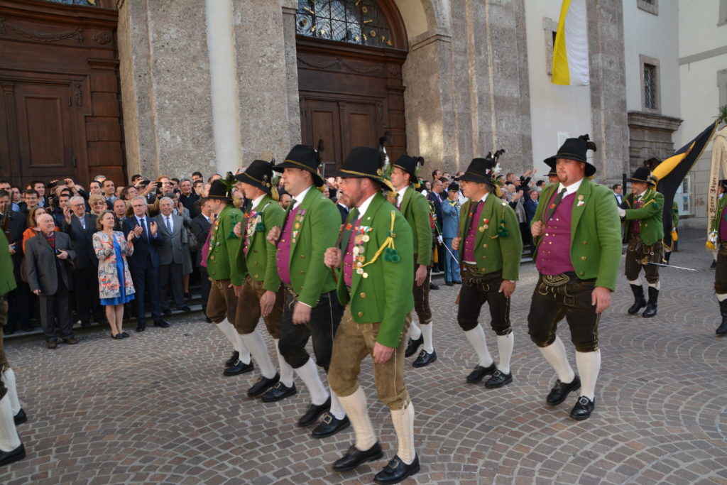Die Axamer Ehrenkompanie überzeugte ein weiteres Mal mit hoher Exaktheit – sowohl die Adjustierung, die Gewehrgriffe, als auch die ausgezeichnete Ehrensalve begeisterten die internationalen Gäste, die dies mit einem überdurchschnittlich langen Applaus honorierten. Das Gesamtkommando führte in gewohnter Manier der Bataillonskommandant des Schützenbataillons Innsbruck, Major Helmuth Paolazzi. Der Landeshauptmann dankten stolz allen Abordnungen – besonders jenen aus Axams.